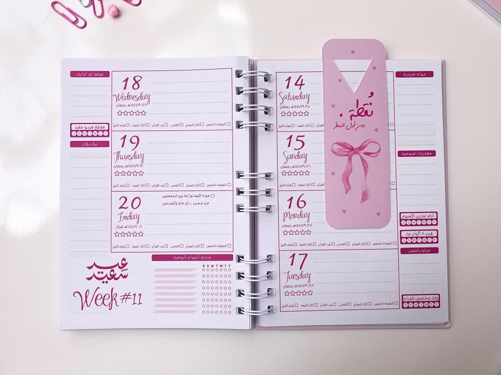 - 🗒️ منظّم أسبوعي مع مساحات للتدوين الحر