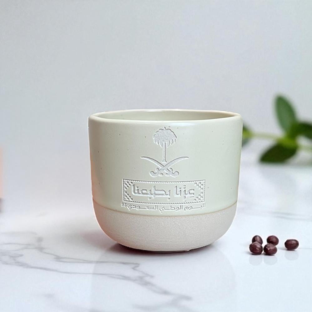 كوب خزفي أنيق بنقشة شعار اليوم الوطني السعودي 95