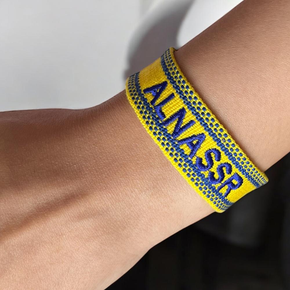 عبّر عن انتمائك بكل فخر مع سوار "ALNASSR" . يأتي السوار بتصميم رياضي أنيق يجمع بين اللون الأزرق الملكي والاصفر النقي، ليعكس هوية نادي